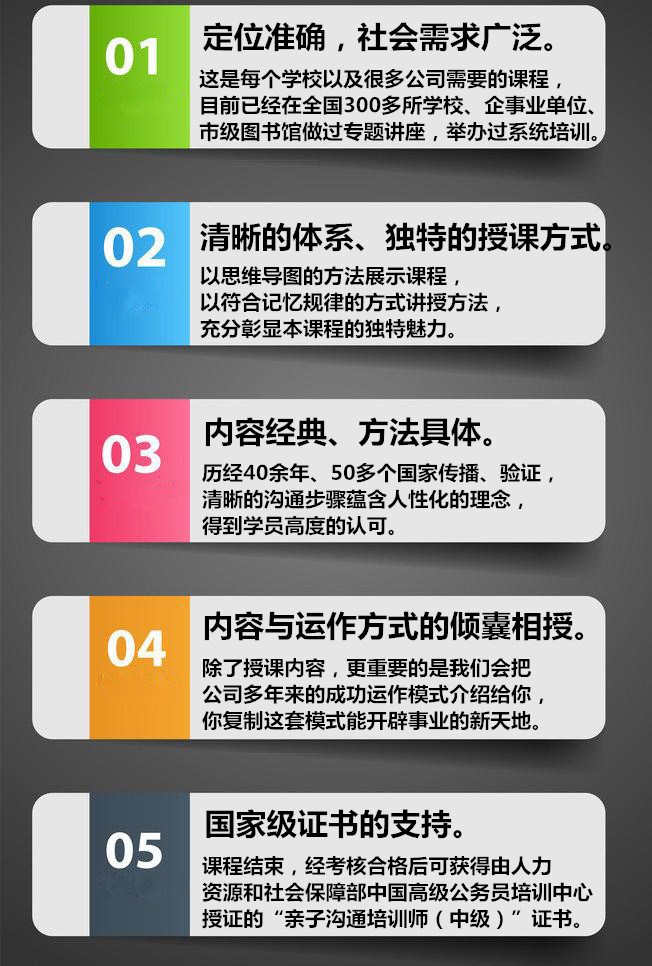 “亲子沟通培训师”是应中小学、幼儿园以及企事业单位的急切需求而推出的国家认证培训项目,经过培训后,学员将能更专业地为家长做咨询辅导和系统的团体培训。