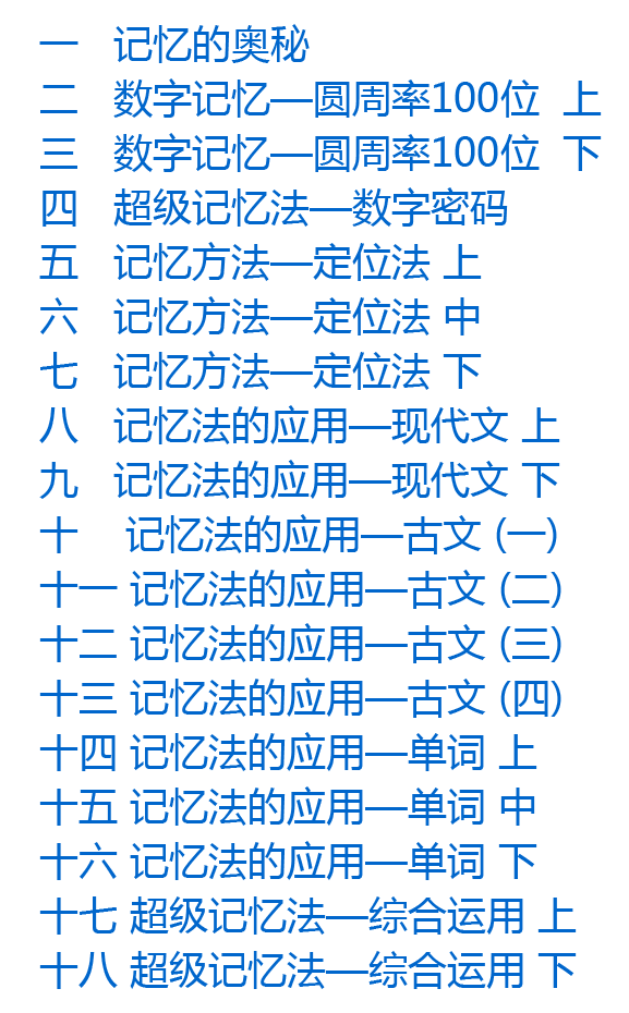 作为国内最专业的记忆力训练课程,《超级记忆力训练班》从第一次开课到现在已历经数十年,让数以万计的学生实实在在提高了记忆能力,提高了学习成绩。